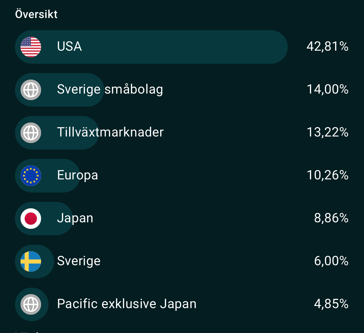 Ja det är så nära marknadsvikt på aktier du kan komma hos Swedbank. Dock behöver du lägga till ca 45% globala räntor också om du verkligen vill ha genomsnittliga avkastningen på hela kapitalmarknaden: