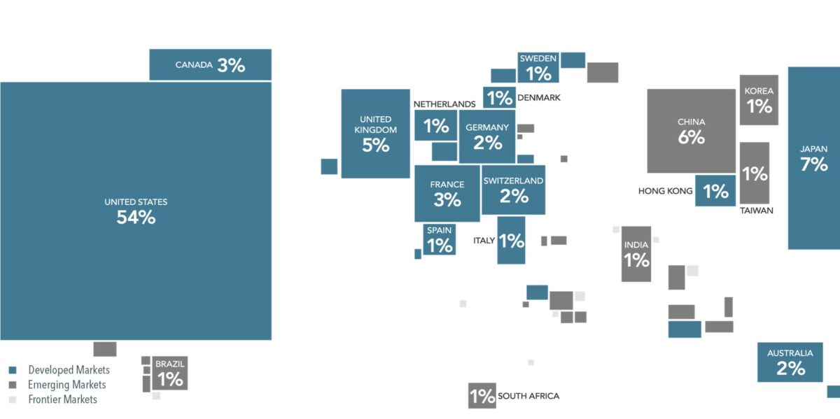 Då får du väldigt nära det globala genomsnittet på aktiemarknaden vilket är optimalt om du är den genomsnittliga investeraren. Svårt att veta dock om man är den genomsnittliga investeraren.