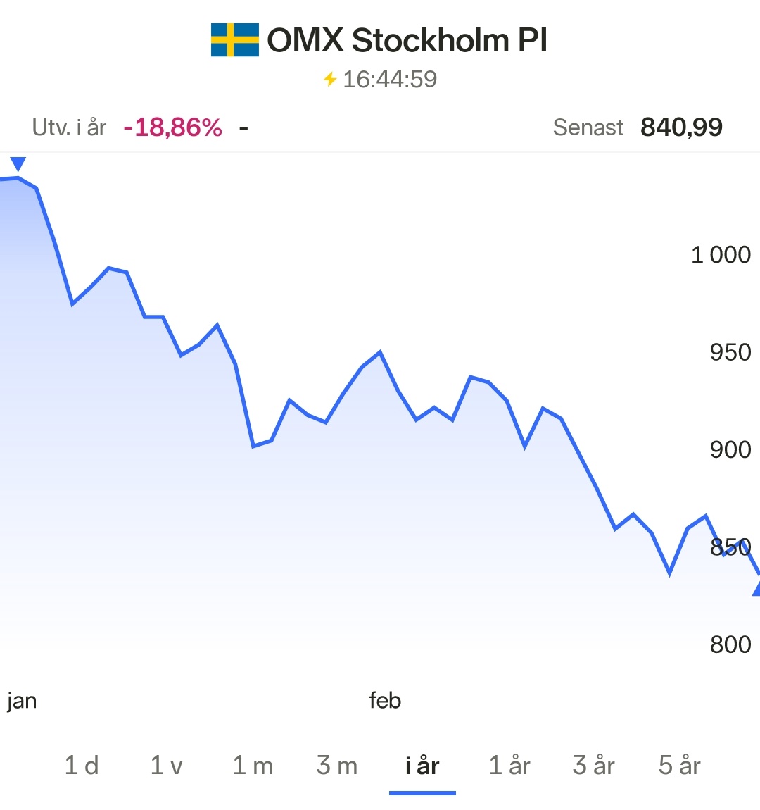 Tänk om börsen bara gick stadigt upp med 10-15 % varje år . Det hade varit perfekt. Ingen av Oss hade behövt arbeta länge. Men verkligheten ser lita annorlunda ut. Börsen går upp/ned ibland mycket ned upp till 30-50% kortsiktigt på 1-2 årssikt. . Det måste man tyvärr leva med. -5 till -10% kortsiktigt är lika vanligt som att gå varje dag till jobbet .
