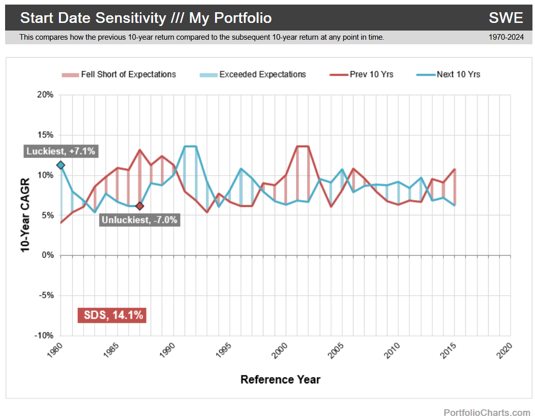 Dock kan vi redan nu dyka ner i backtests för att se hur denna portfölj presterat historiskt, sÄ nedan följer en rad grafer frÄn portfoliocharts.com!