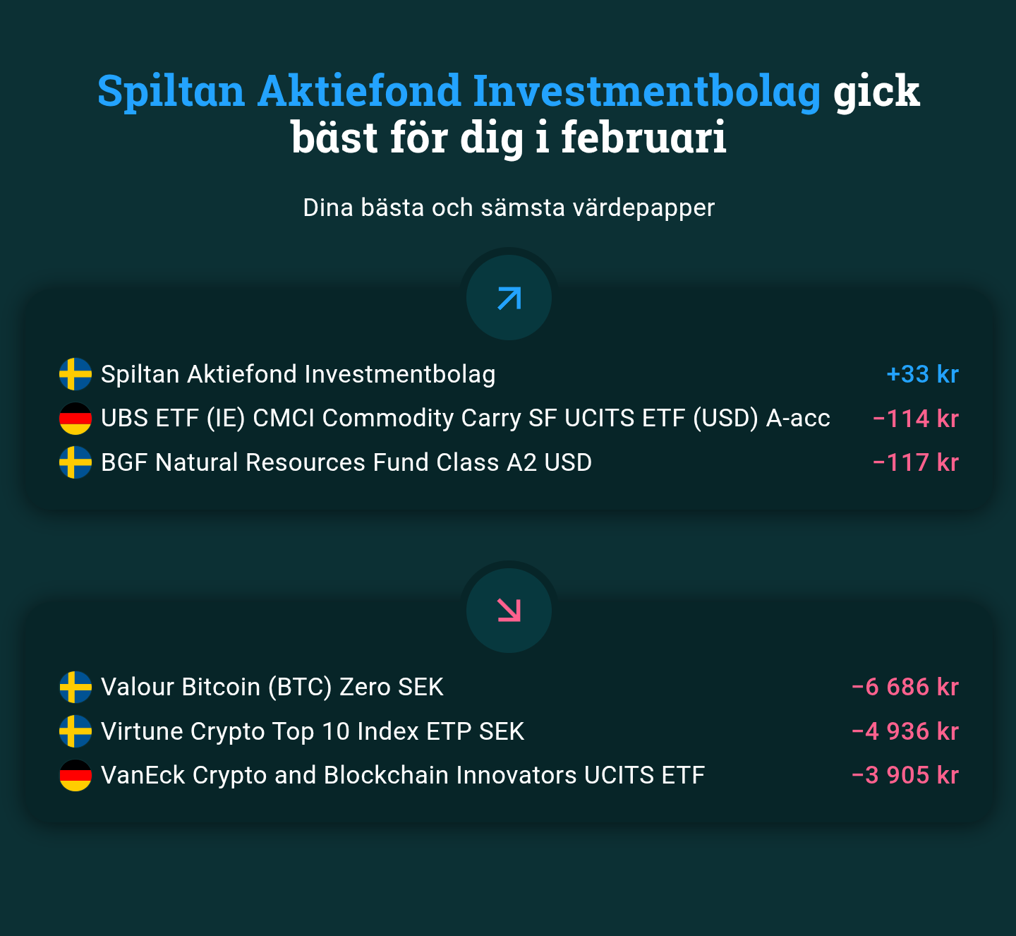 | Fond | Spiltan Aktiefond Investmentbolag | 0,1 | 0,030 |