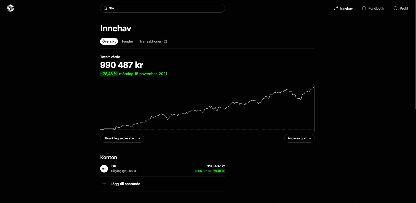 Jag kollade in mitt SAVR konto precis (där jag har alla mina hög risk fonder) och kom fram till att jag avkastat +78.48% på ca 1.5 år (kontot öppnades 8:e maj 2020):