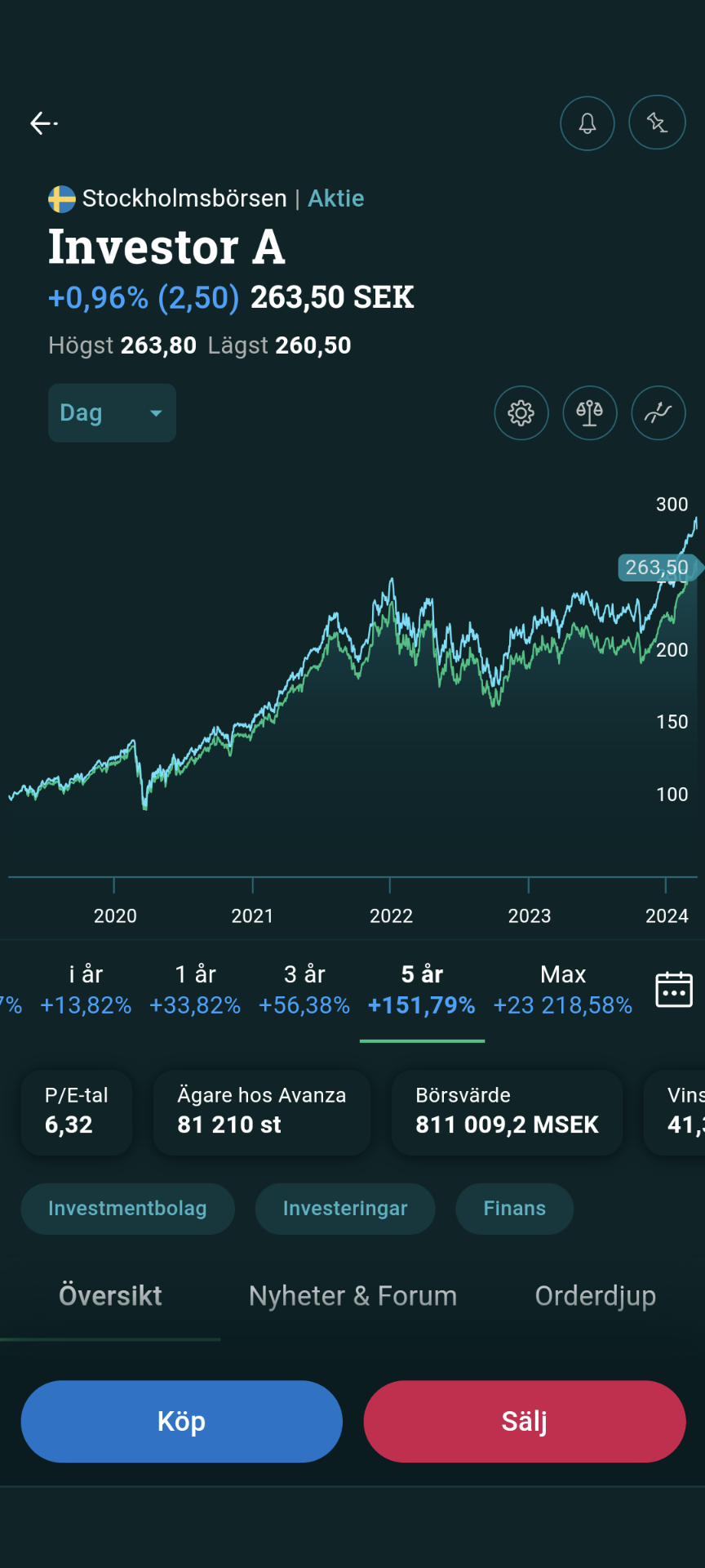 Mörkgrönt är Investor.