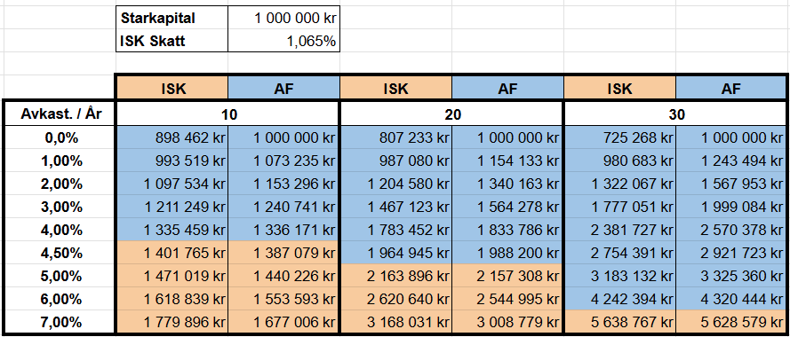 Jag personligen är inte övertygad att ISK är så självklart längre. Så jag gjorde lite beräkningar och det var ännu mer shockerande.