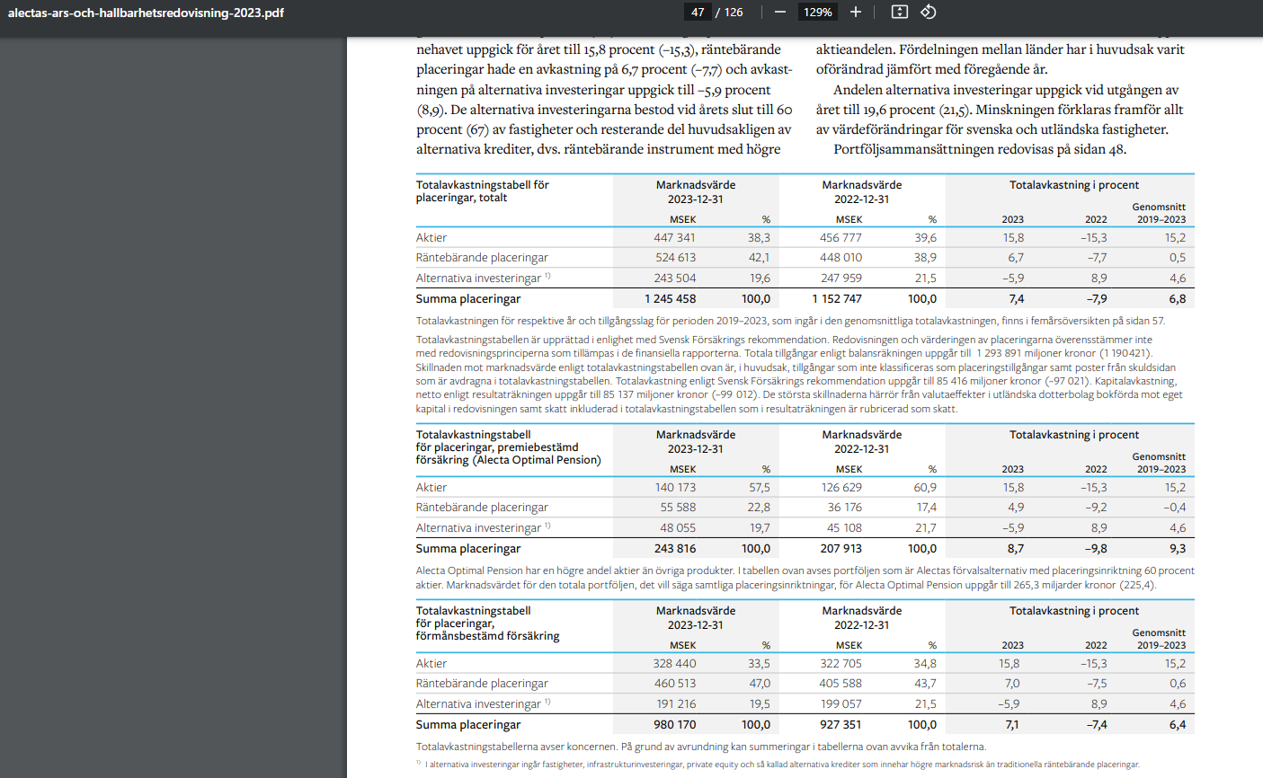 Kunde inte hålla mig, så skickade idag iväg ett meddelande till Alecta och frågade vad som gäller, dvs är det fel på hemsidan eller är det fel i produkt och informationsblad?