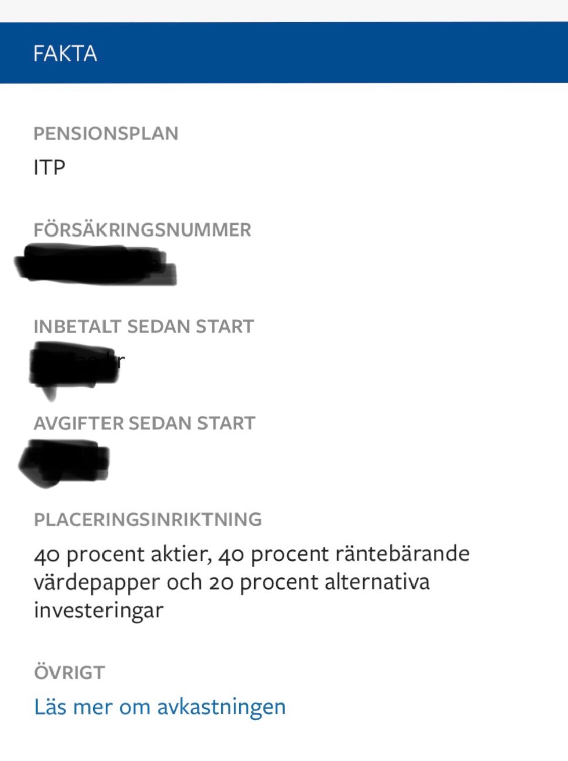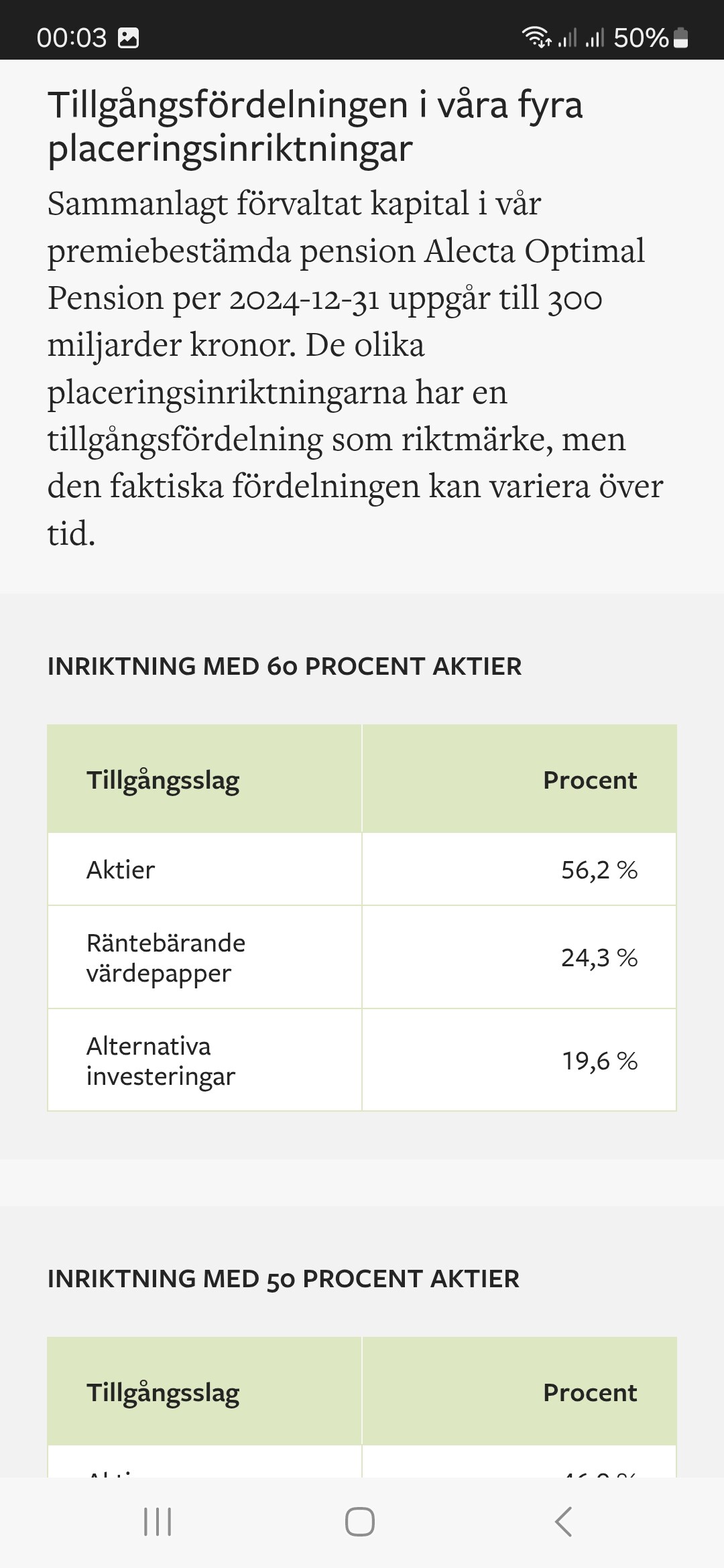 Loggade också in nu och fick samma text, dvs 40 % aktier…