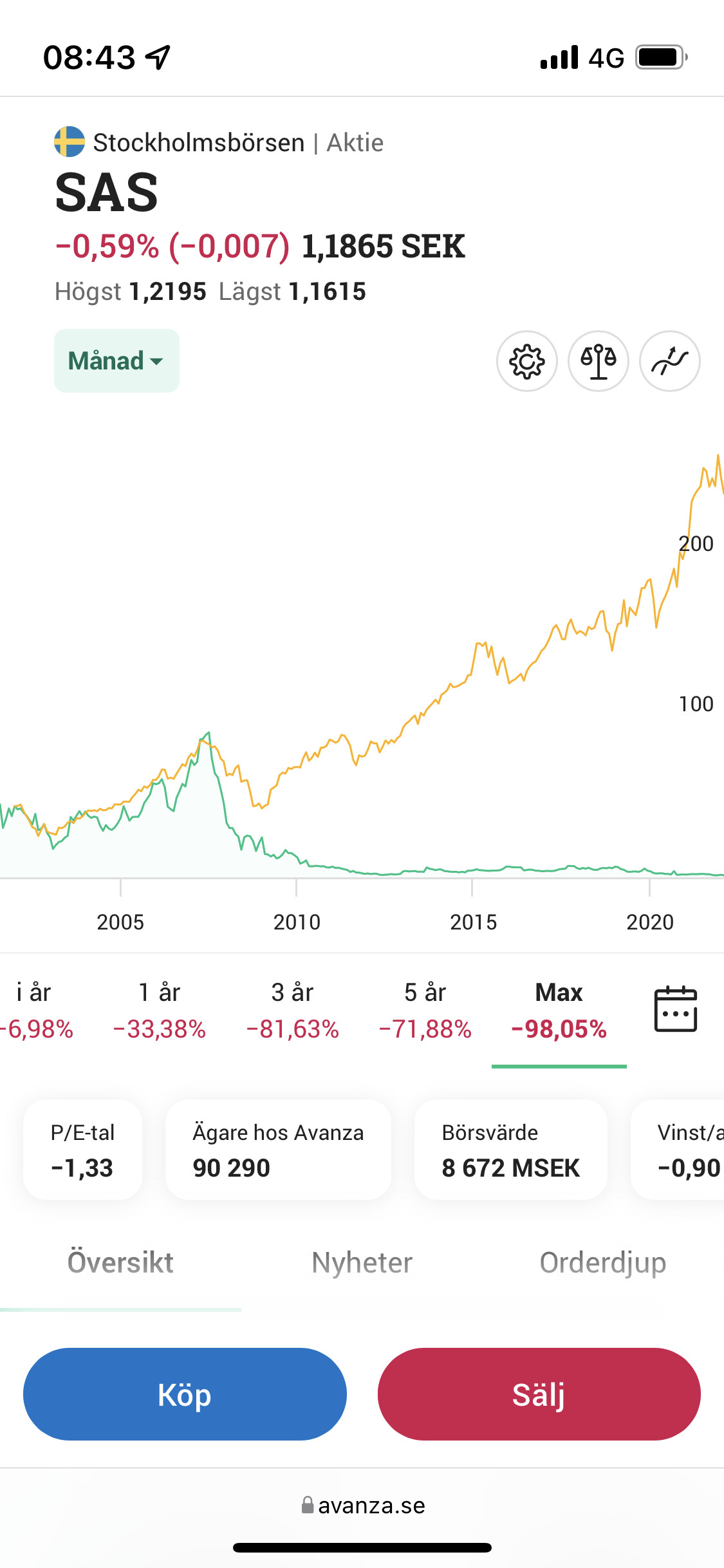 Den har bara avkastat –98% totalt, snart vänder det säkert ![]()