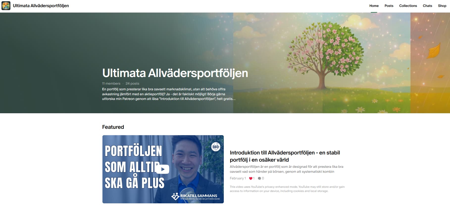 En dedikerad kanal för nörderi. Samtidigt som jag vill förenkla forumtråden vill jag inte förlora de djupare diskussionerna. Patreon blir en plats där vi kan fortsätta jakten på den “ultimata” portföljen med 100 % fokus. Där kan jag dela mer nischade analyser och känna mig friare i de tekniska diskussionerna med er som verkligen vill gå in på djupet.