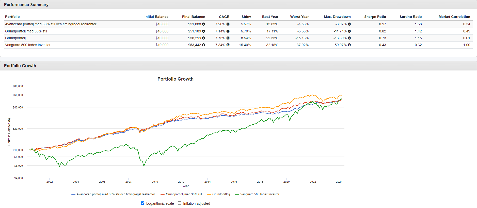 Avancerad portfölj med 30% stil (SEK) | 7,96% | -17,46% | 0,67 | 1,15 |