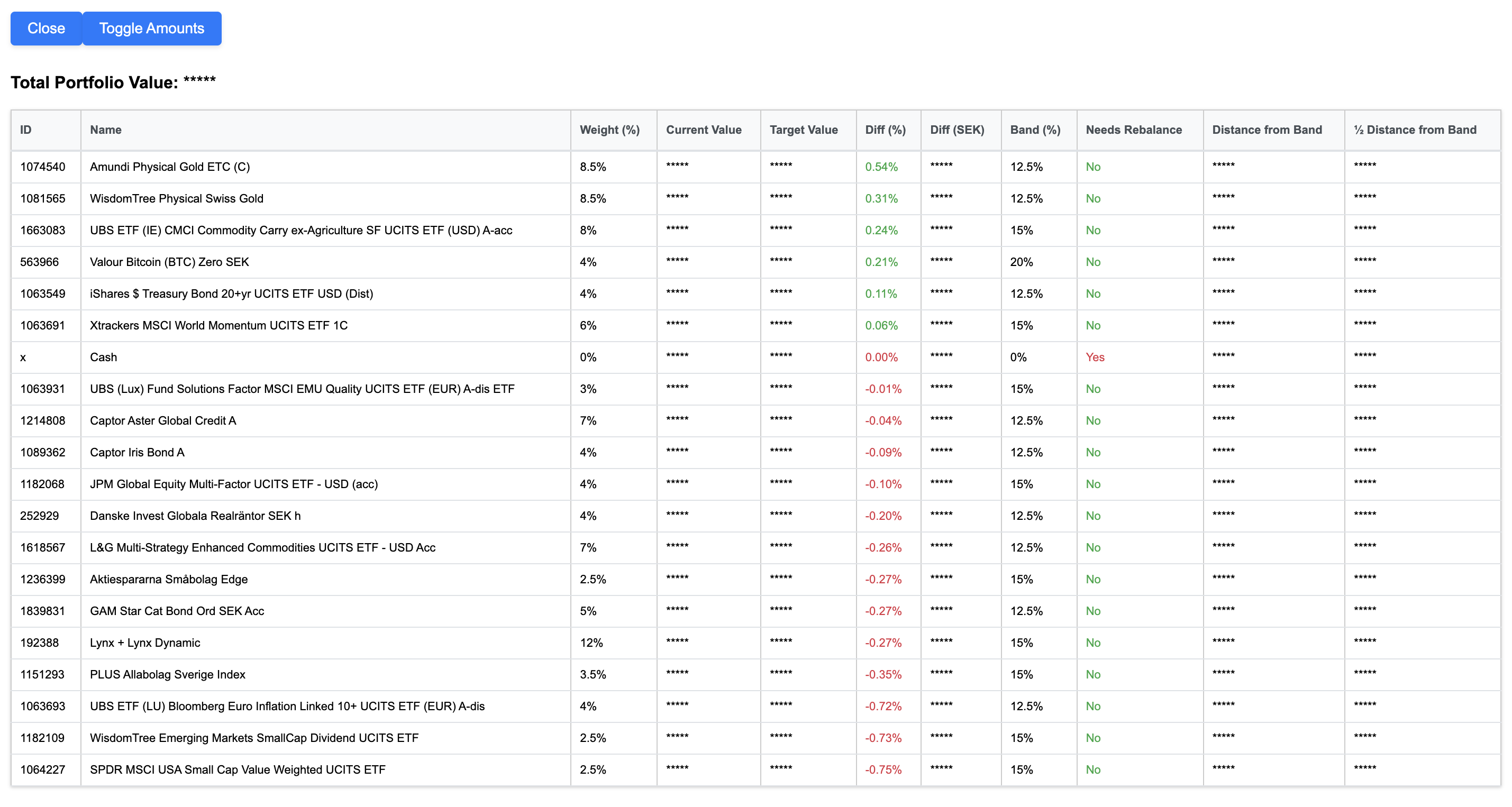 Jag har skrivit en Chrome-extension för att förenkla ombalanseringen. Har funderat på att även bygga så den ombalanserar helt själv, men det får komma senare. Fungerar med Avanza och (delvis) Nordnet.