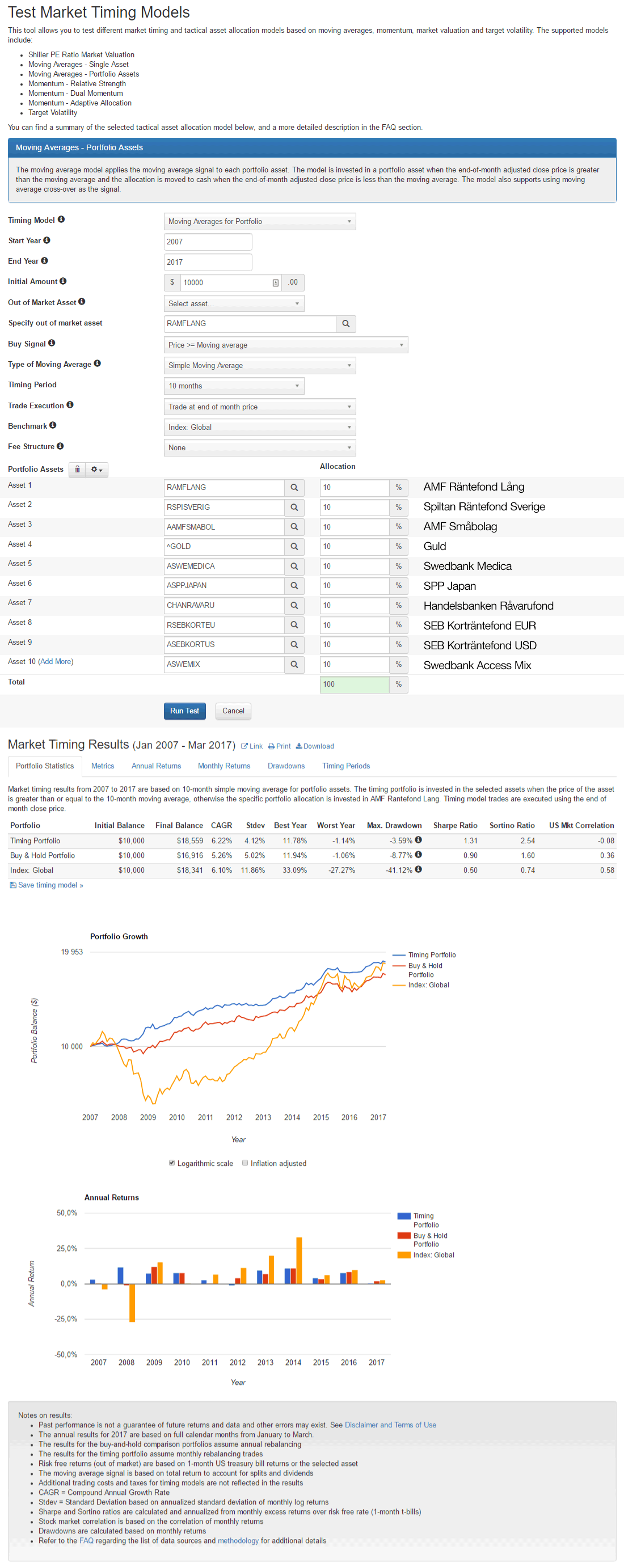 Om vi kör en analys på PortfolioVisualizer: