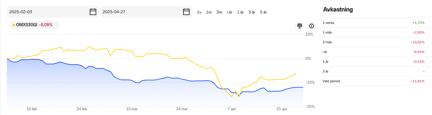 Sjukt nog har den dock inte överpresterat “index” alls sedan start ![]()