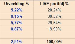 Startade min AW ca 23 april, helt OK utveckling och bra lugnande medel för nerverna när man vet hur aktieportföljen presterat i år.