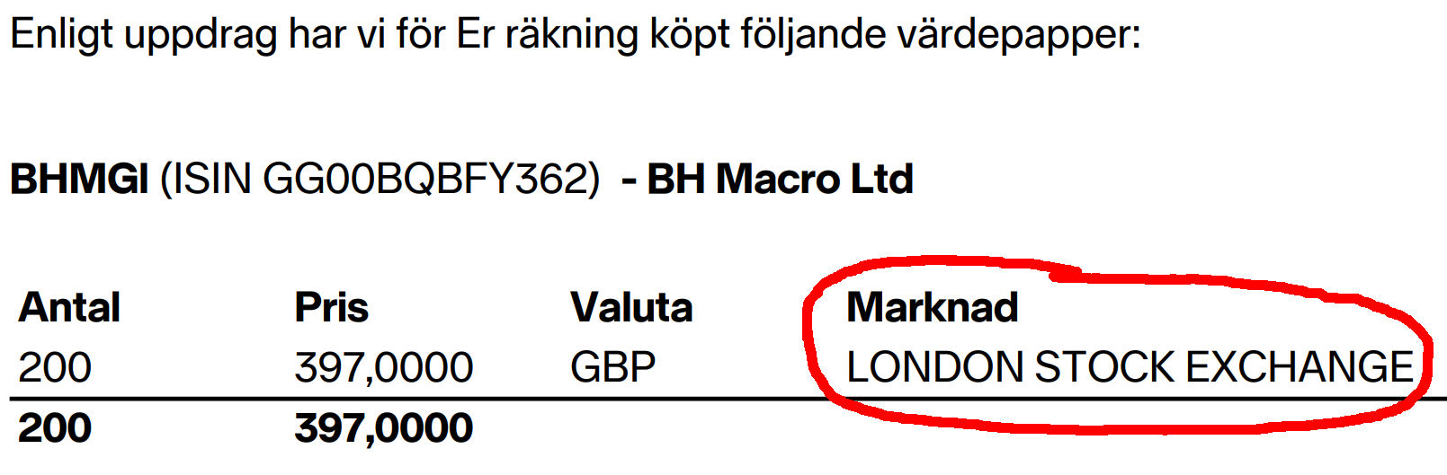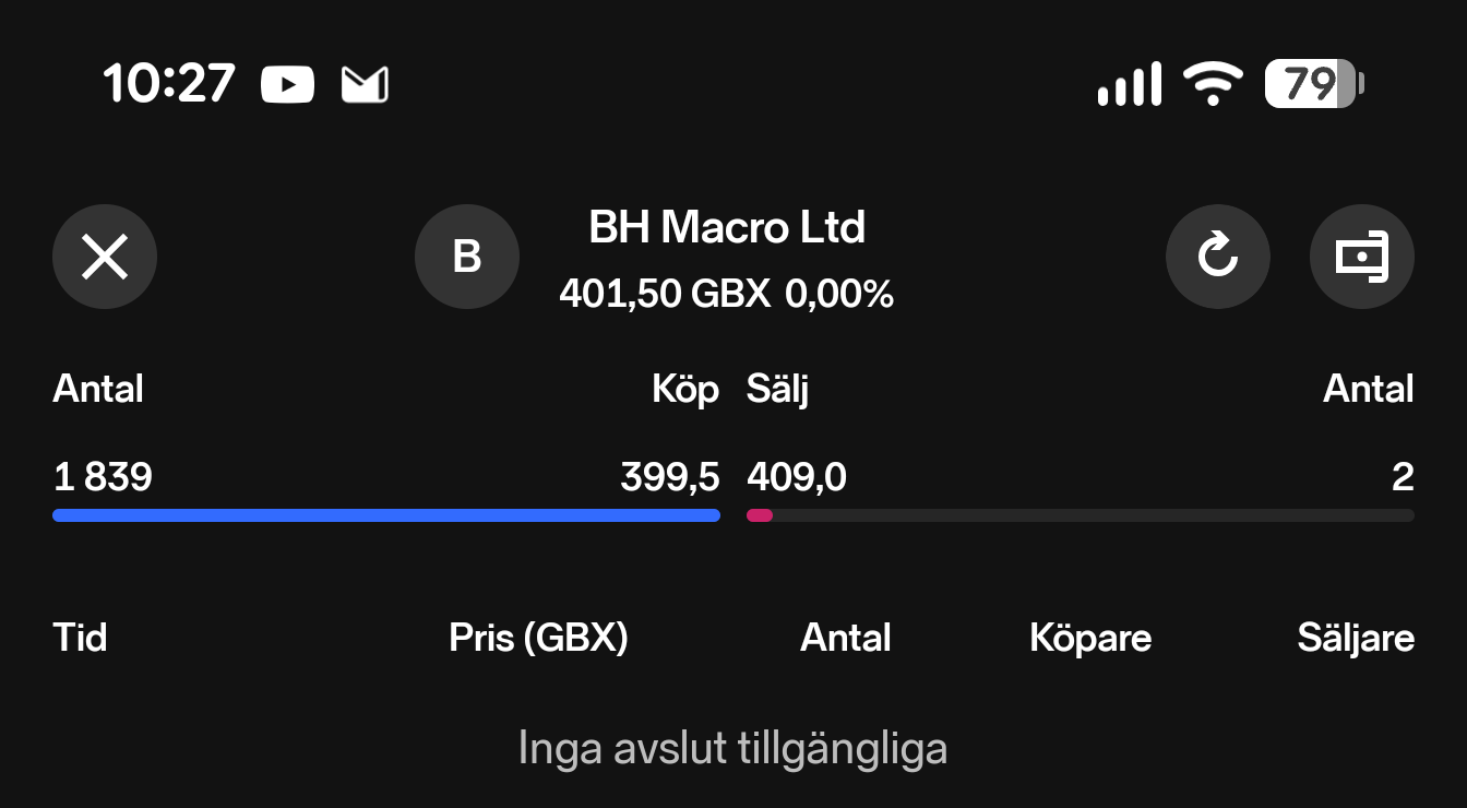 Jag lyckades köpa få igenom ett köp till kursen 401,50 GBX senare under dagen, men jag är fortfarande lite brydd över likviditeten i handeln hos Nordnet.