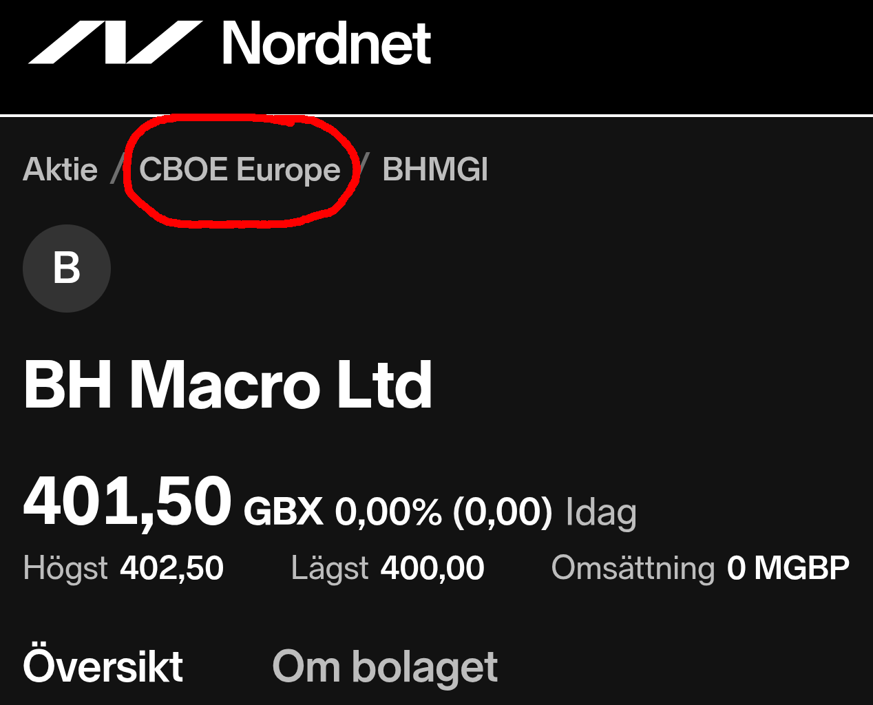 Måste rimligen vara enbart Nordnet. London Stock Exchanges sida säger att det omsatts en bit över en miljon aktier både igår och idag. Vet inte om den kanske handlas via nån tredje part på Nordnet och det är därför spreaden är så hög? Bid/offer var 400.50 / 401.00 vid stängning idag enligt LSE.