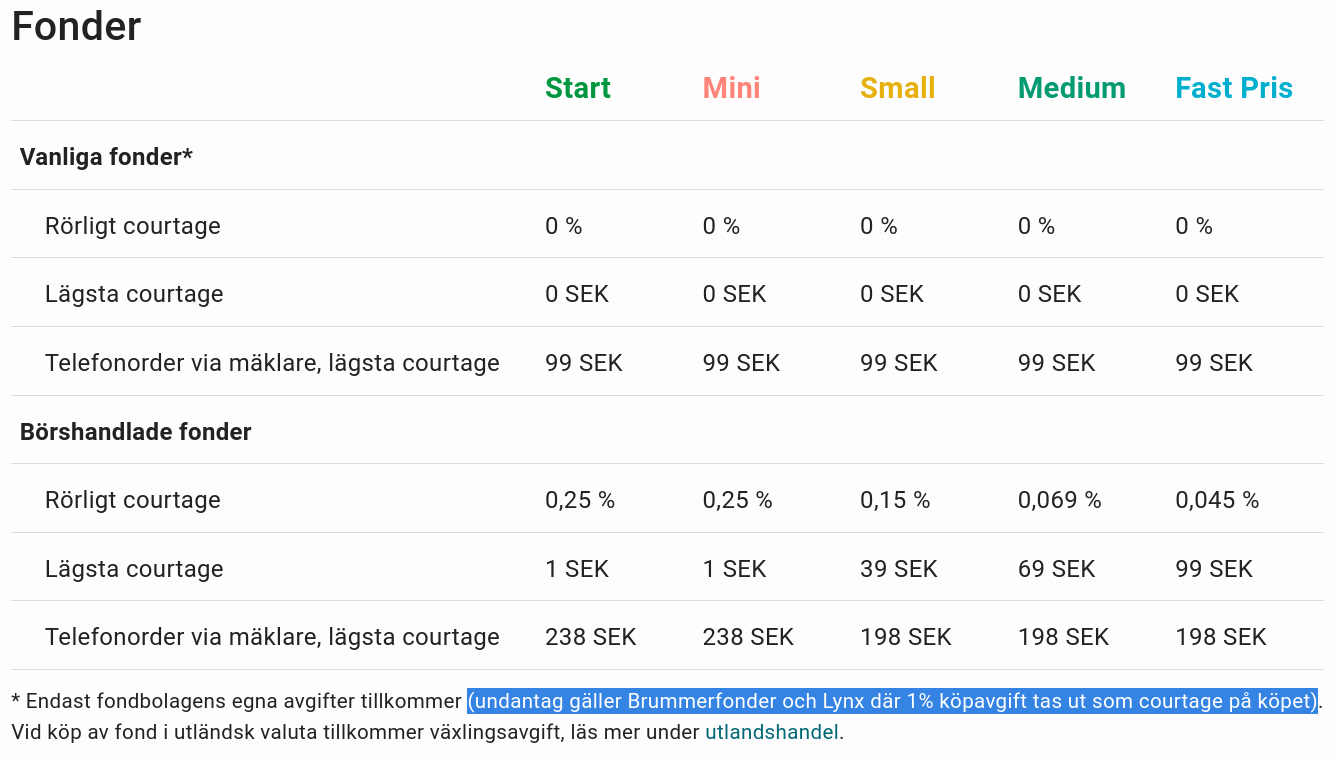 Dessa fonder är dessutom något så unikt som icke börshandlade fonder med courtage, vilket kanske kan komma som en liten obehaglig överraskning för en del. Inte för oss på Rika Tillsammans förstås, eftersom vi alla alltid läser all tillgänglig dokumentation noga både en och två gånger.
