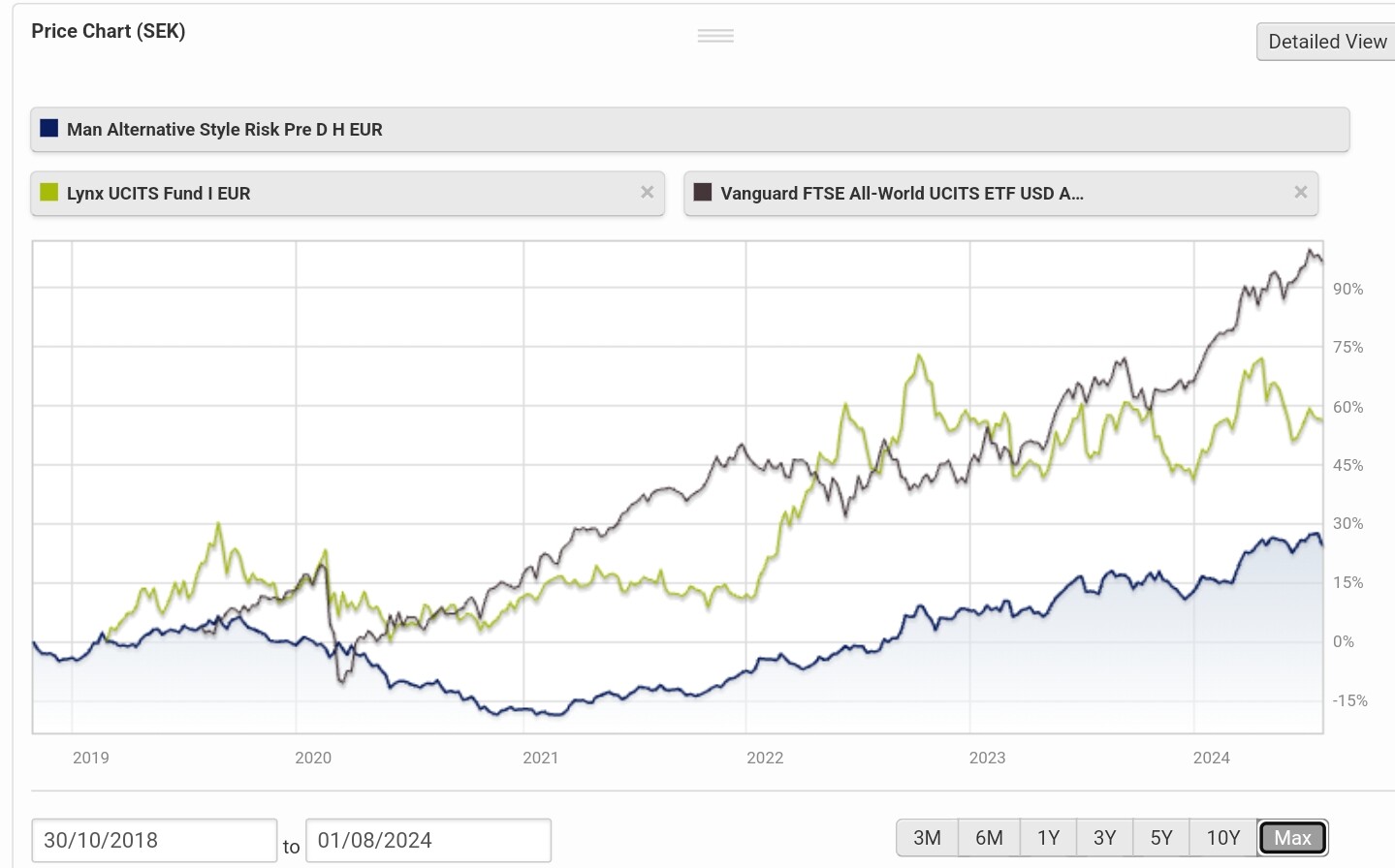 Passar på att svara på detta också! Intressant fynd, kikade snabbt, inte jätteimponerad. Såhär ser utvecklingen ut jämfört med Lynx och globalindex: