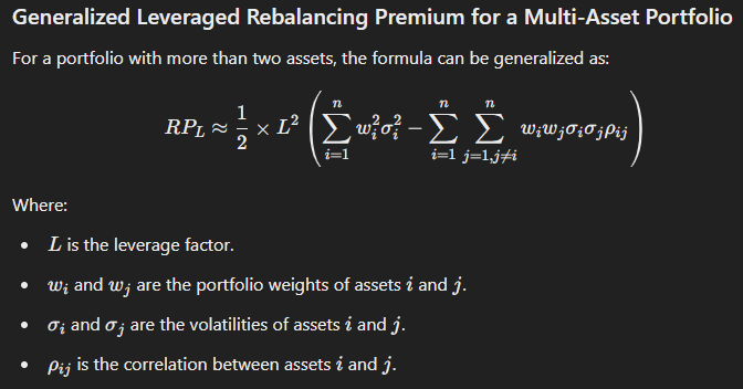 Jag förstår inte hur ökad volatilitet p.g.a. hävstång på portföljen kan ge högre ombalanseringspremie. De enskilda tillgångsslagen i portföljen blir ju inte volatilare av portföljbelåning, endast avkastningen på eget kapital blir mer volatil.