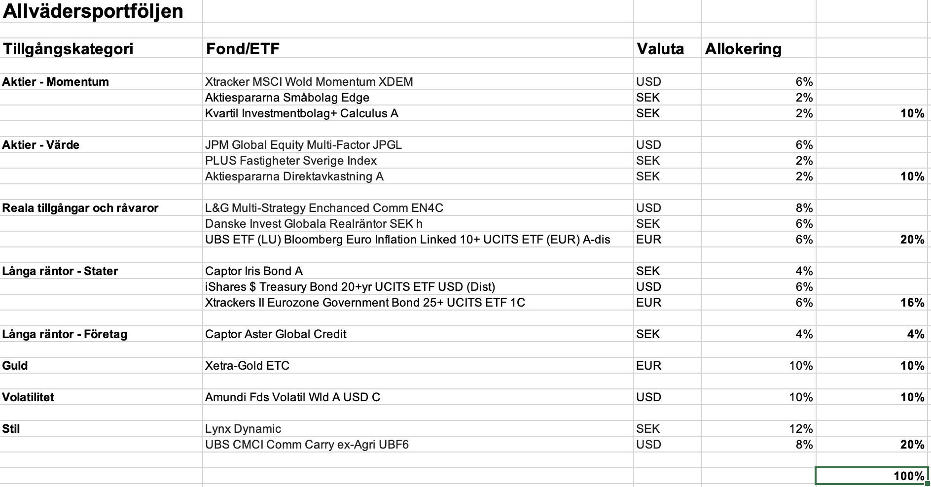 Jag har uppdaterat del 3a med ovanstående. Tack för ert intresse, jakten på den “ultimata” allvädersportföljen fortsätter!