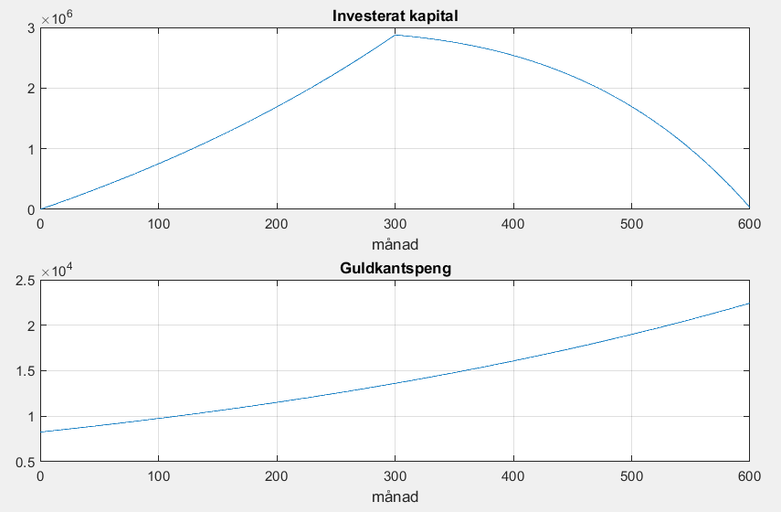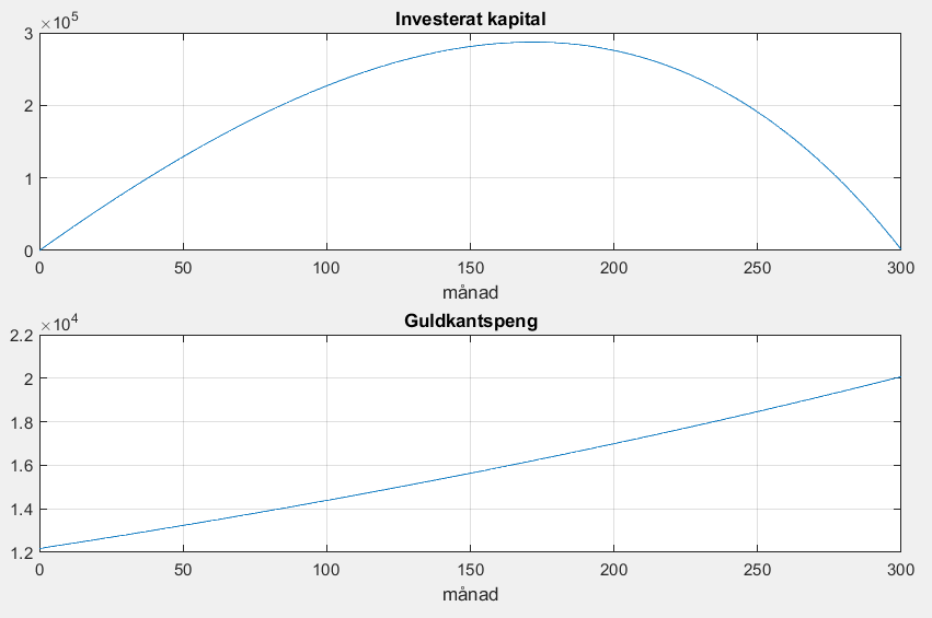 Med t.ex 2 \% inflation och 5\% avkastning (på årsbasis) blir det initialt 12180 kronor som kan spenderas och resten investeras (och sen investeras allt mindre varje månad, och efter 120 månader börjar man ta av kapitalets avkastning och efter 170 månader börjar man behöva ta från kapitalet för att behålla köpkraften).
