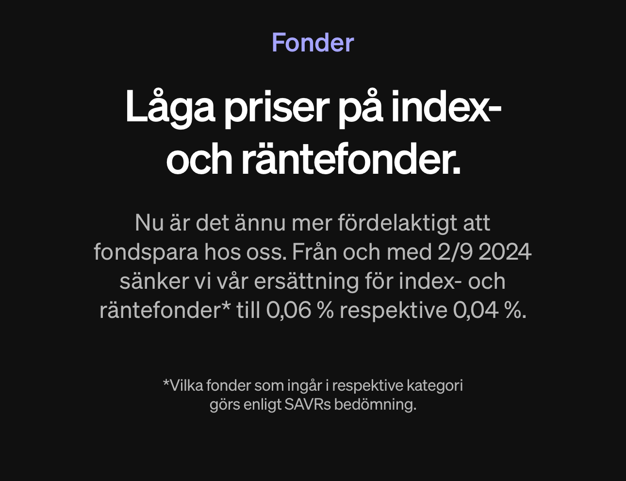 SAVR Global by Vanguard är ett långsiktigt produktsamarbete mellan SAVR och Vanguard för att ge investerare tillgång till en billig global indexprodukt. Vi har tillsammans valt att ta bort såväl courtage som växlingsavgifter från denna fond och vår plan är att instrumentet ska fortsätta att handlas som det gör idag.