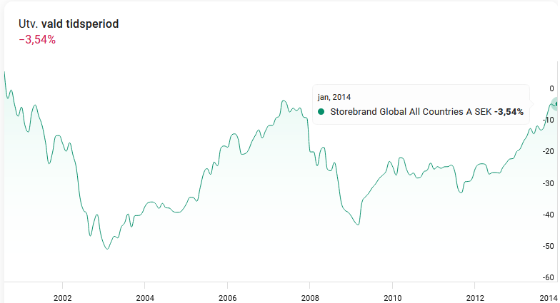 Även 1929 är ju ett annat exempel, men med månadsspar och räknat med utdelning hade det inte varit “så illa” som man kan tro, trots depression och två världskrig innan index var tillbaka.