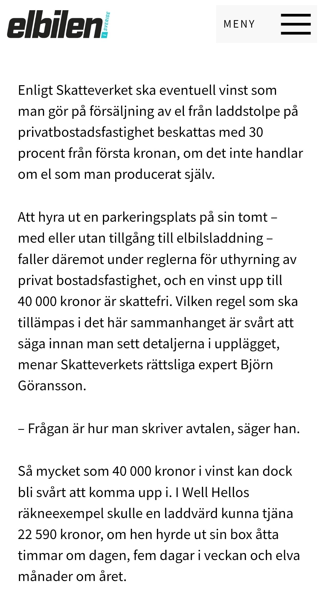 Det som är mer intressant i lönsamhetsaspekt för dig är istället att hyra ut p-platsen (inkl el och ladd möjlighet) och ta betalt för den hyran. Då kan du tjäna 40000 skattefritt innan skattemyndigheten vill börja blanda sig i.