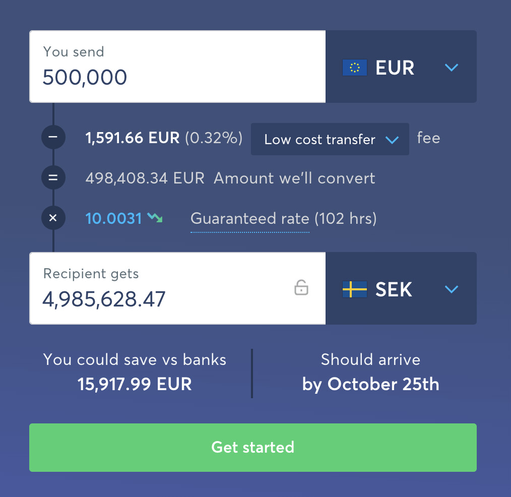 Alternativet för dig är dock att öppna ett valutakonto hos en nätmäklare och föra över beloppet i EUR till Sverige för att växla hos Avanza, Nordnet eller liknande. Jag har ingen erfarenhet av det här personligen men jag vet att det är fler som har det, b.la. @janbolmeson om jag inte missminner mig.