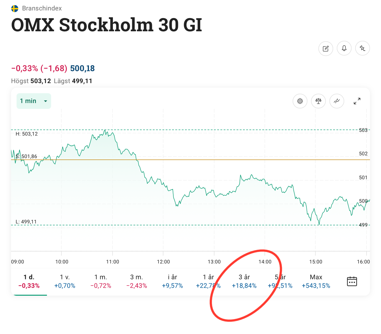 På 3 år har omxs30 gått upp rungande ca 0%.