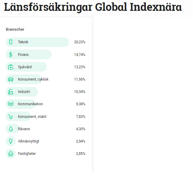 Samtidigt så om man investerar indexnära marknadsviktat så är dessa branscherna redan överrepresenterade
