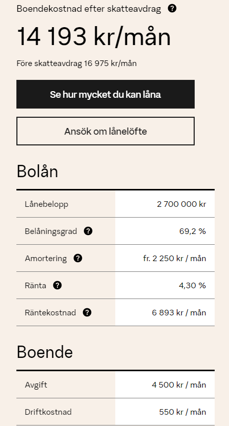 Hade varit bra med lite mer information om månadsavgift för bostadsrätten etc. för att få ihop en budget. Matar man in siffrorna i t.ex. SBAB och antar månadskostnad samt drift så tycker jag ändå att budgeten håller.