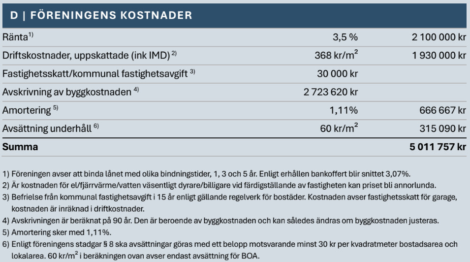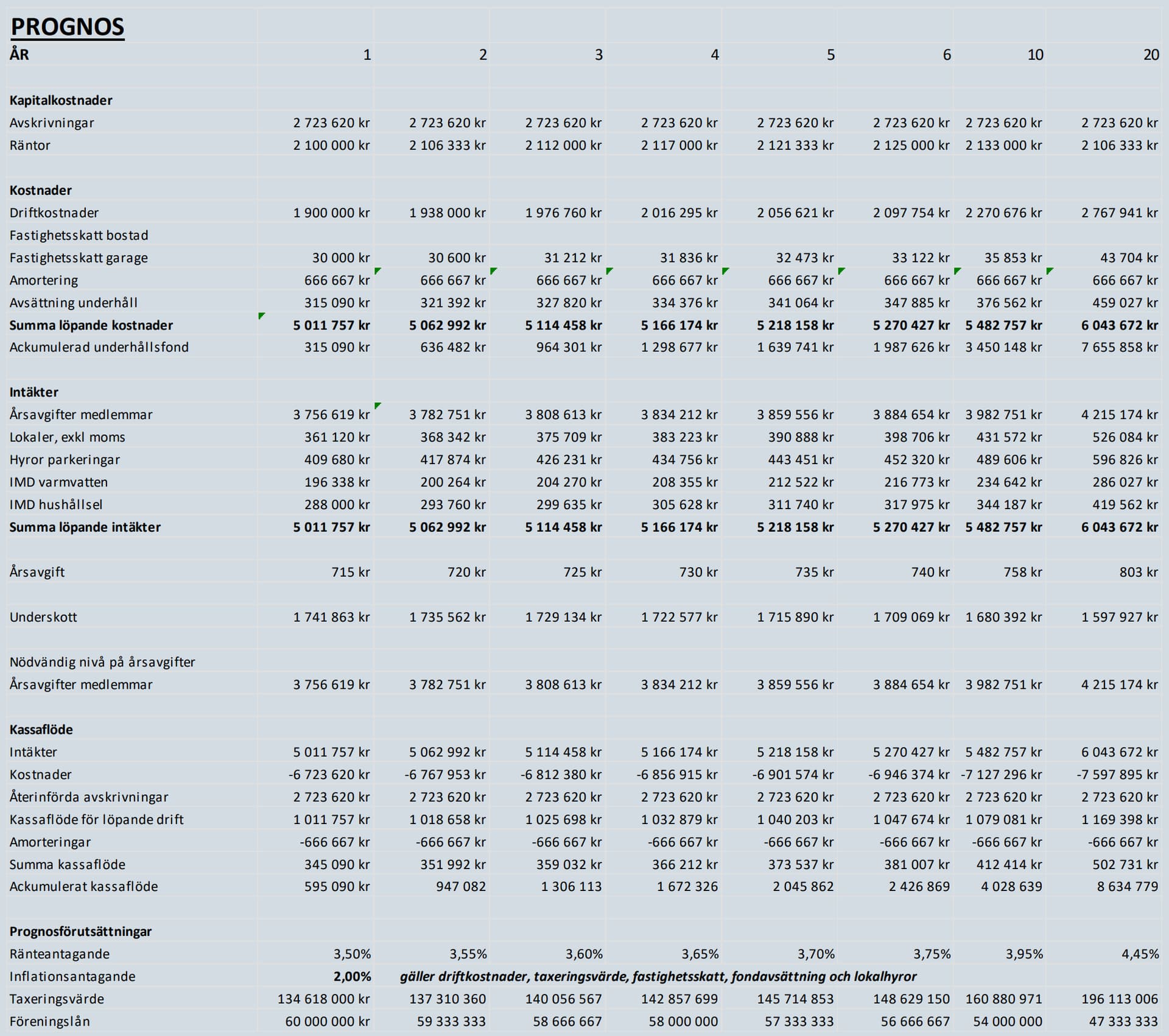 Sedan tillkommer ju att driftskostnader alltid är räknade på minsta möjliga. Jag kan inte bedöma om 1,9mkr i drift för den här föreningen är rimligt - men det låter lågt även för ett nybygge.