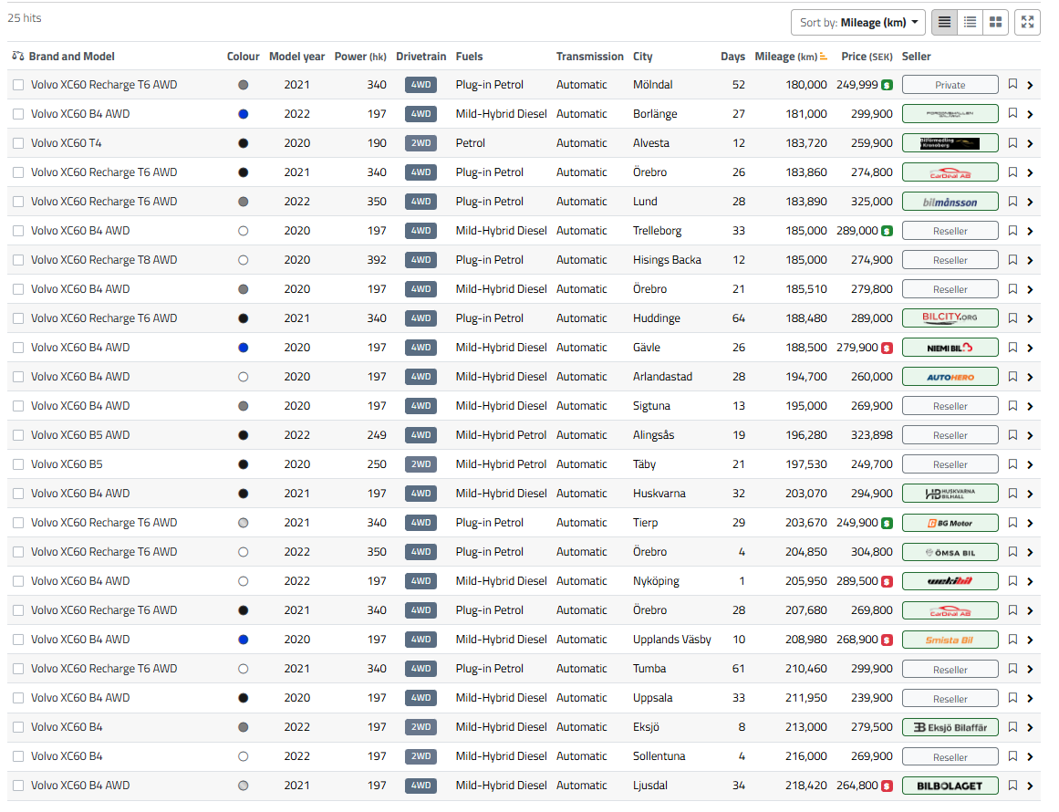 Missförstår jag? Majoriteten av dessa bilar ligger över 250 000 kr och har runt 18-19k mil.