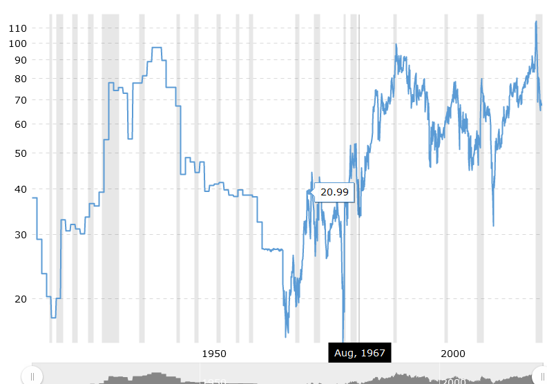 Du har kanske hört om gold-silver-ratio? Jag tror Eric pratar om det i det sista avsnittet. Historiskt har detta varierat mellan 10 och 110. I mars 2020 var det 110 och guld var alltså 110x “dyrare” än silver. Det är historiskt rekord sedan 1900-talets början. I en preccious metals bull market brukar ration går ner och Eric nämner 20 eller möjligen 10 som riktvärde innan den bull market vi är i nu är över. Idag är vi mellan 60 och 70 så silver är fortfarande billigt i den bemärkelsen.
