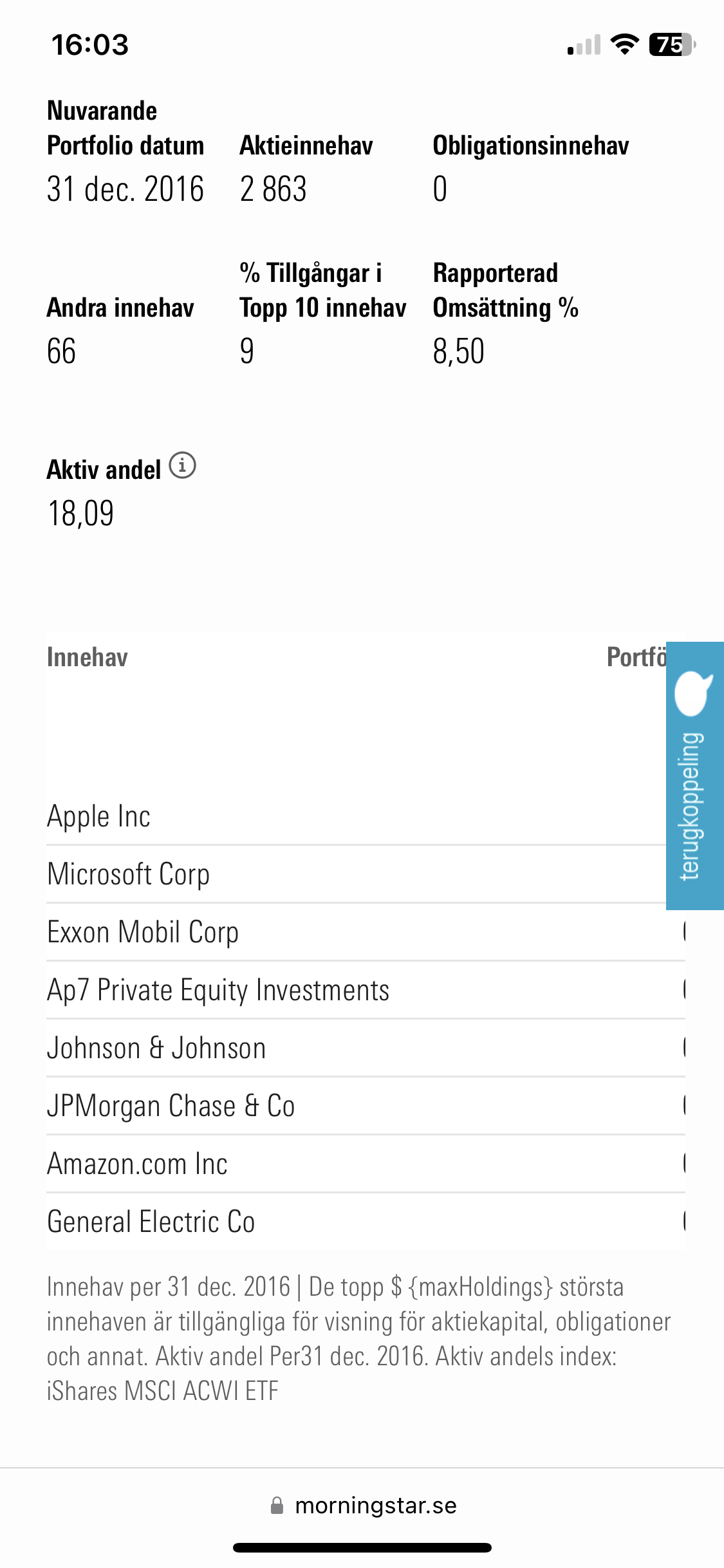 Men poängen med tråden är ju just att AP7 aktivt väljer att inte följa världsindex, utan har en active share på 29% enligt diagrammet ovanför.