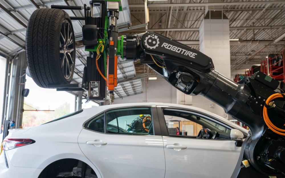Det finns redan robotar för däckbyten, lär väl dock ta ett tag innan de är kommersiellt mogna.