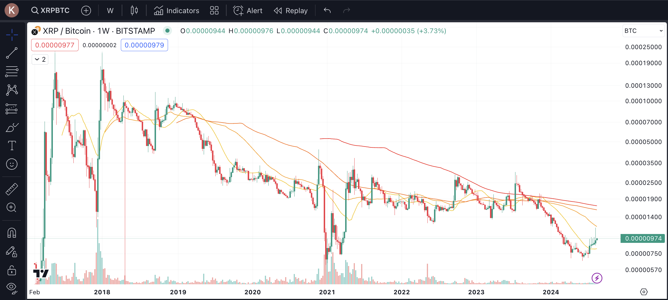 Här kan du se hur XRP har gått mot bitcoin de senaste 10 åren