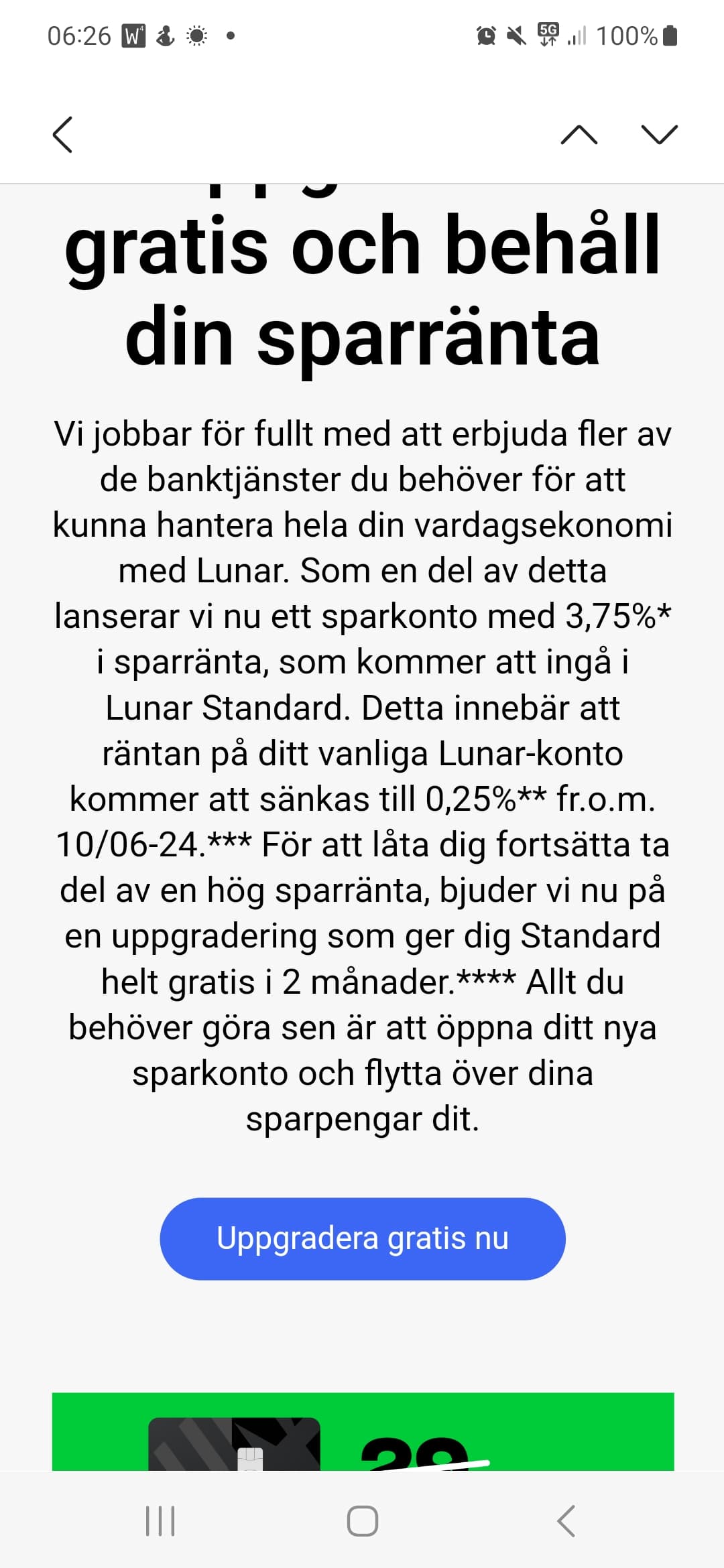 Ja, otydlig information om vad det faktiskt innebär, dvs att de börjar ta betalt alt sänker räntan drastiskt. Nu letar jag efter ersättare (behöver inte kort kopplat till sparkontot) - både jag, min man och mina två barn har Lunarkonton…