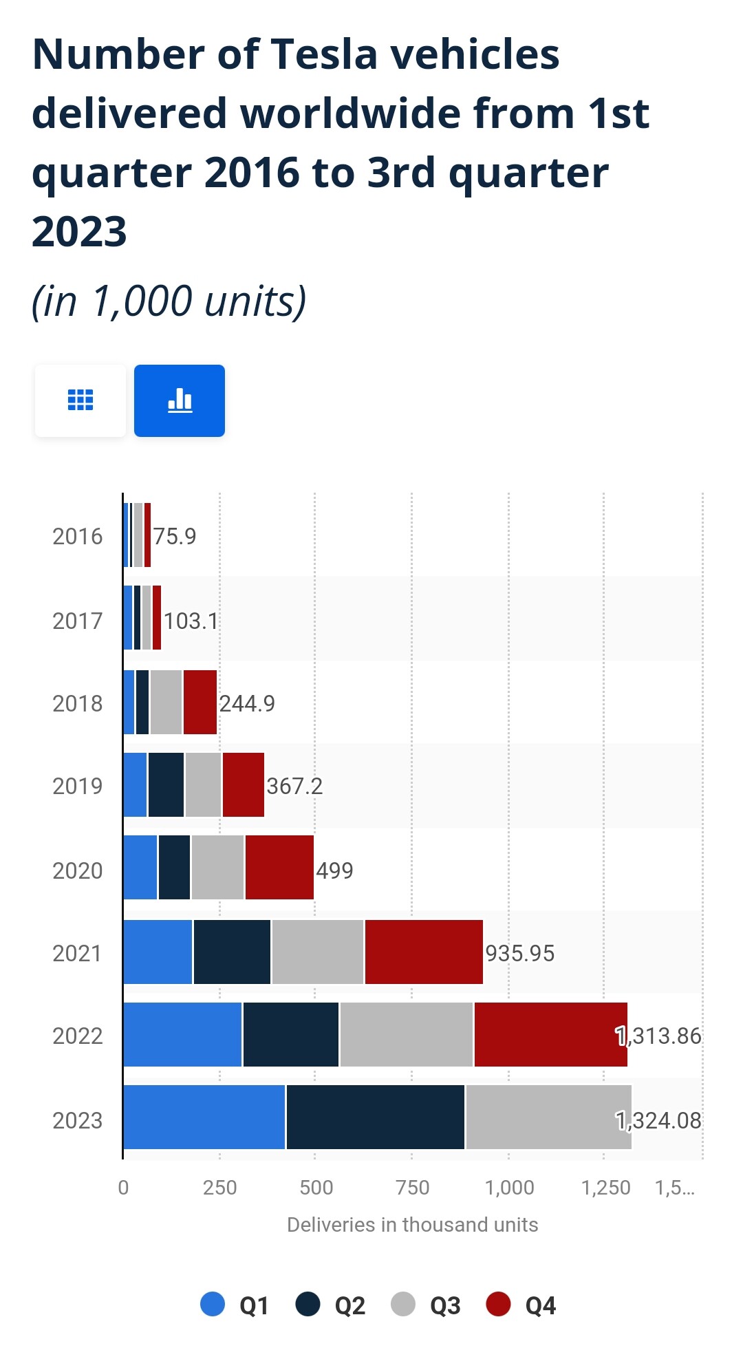 Gillar den här grafen över Teslas försäljningstillväxt. Det blir lättare att förstå Teslas värdering.