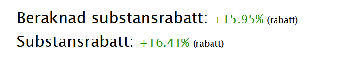 beräknad substansrabatt (ibindex räknar utvecklingen för de noterade underliggande innehaven åt dig, men använder rapporterat substansvärde för onoterade)