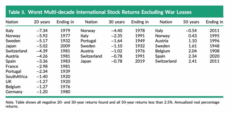 Historiska siffrorna för Sverige: en bock i VVDJS-listan. Men - historisk avkastning != framtida avkastning. Är man lite äldre och vill konsumera sina pengar är man mest intresserad av uttagsfas. Och horisonter nästa 20-40 år.
