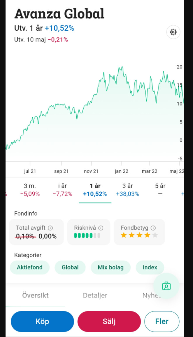 jag är väldigt försiktig och det här var en fond jag kände mig trygg med. låg avgift och bred.