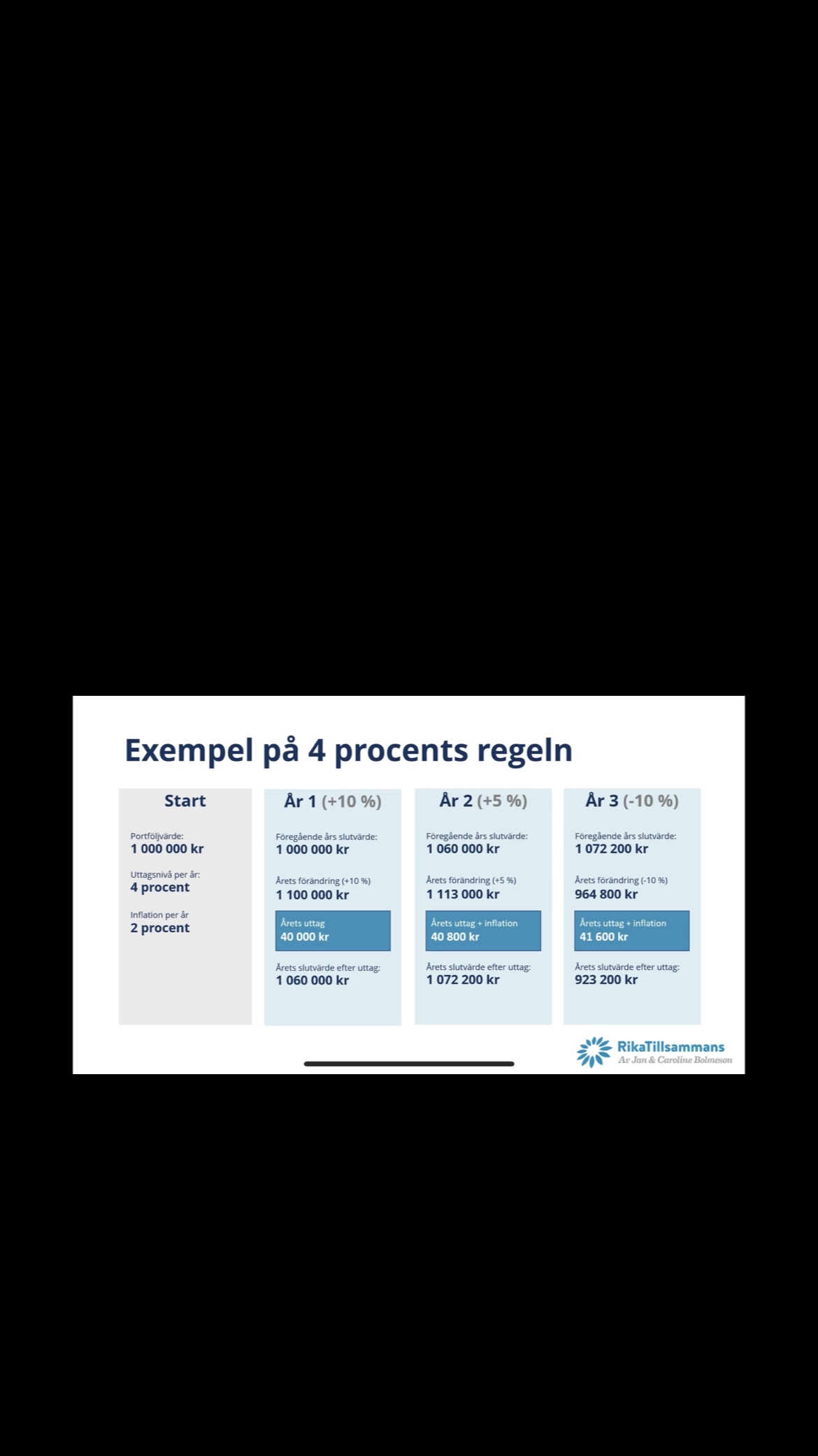 ( + har 2 års utgifter på sparkonto och jobbar de år det är nedgång och låter kapitalet vara eller i alla fall inte ta lika mycket. )