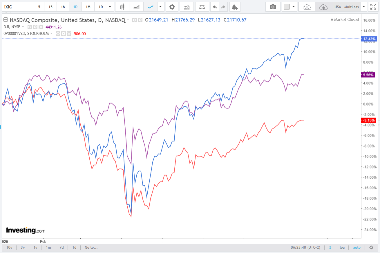 Nasdaq är väl återigen på ATH nu, men min fondportfölj är inte på samma nivå värdemässigt som i höstas, vilket då troligen beror på dollarns tapp.