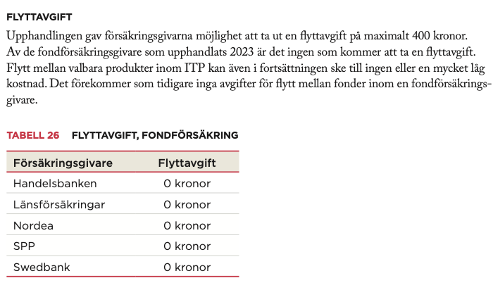 Nu är upphandling av ITP klar och gäller från 1a October 2023. De har tagit bort flyttavgifter som man kan flytta kapitalet för gratis.