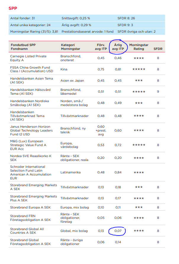Jag ska maila de och fråga om avgifterna av Storebrand Global Plus/Storebrand Global All countries 0.13% stämmer. Om siffrona stämmer kommer jag sedan flytta till mycket billigare LF fonder med bara 0.07% avgift. Flyttavgiften är 0kr från SPP till LF