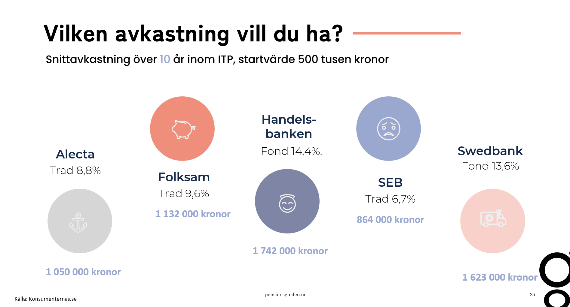 Min tolkning är att för Trad-delen så har jag ett ok val i Alecta. Fond-delen kunde vara aktuellt med en om-tanke.