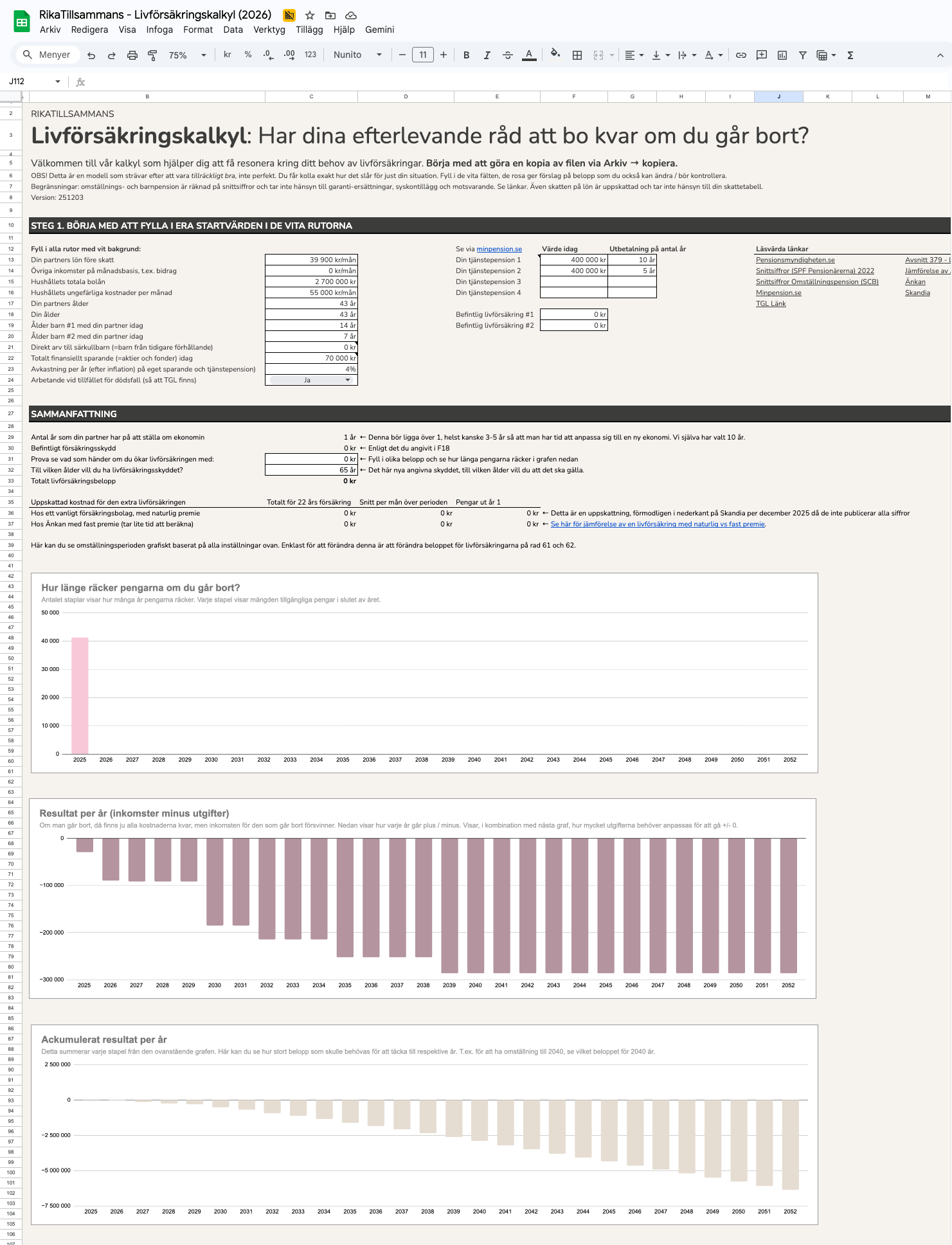Med tanke på veckans avsnitt om Livförsäkring har jag roat mig med att uppdatera min Livförsäkringskalkyl som simulerar vad som händer med ekonomin om man skulle gå bort. Kan du hjälpa mig med feedback?