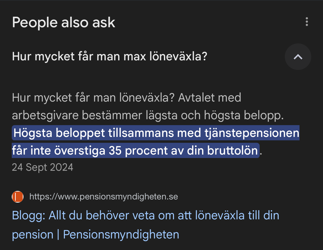 Jag har för mig att jag läst någonstans om en gräns för löneväxling. Den skulle gå ut på att man maximalt kan löneväxla en viss andel av lönen. Jag pratar nu inte om brytpunkten utan om en annan typ av gräns. Är det korrekt att en gräns av detta slag finns eller har jag missförstått något?