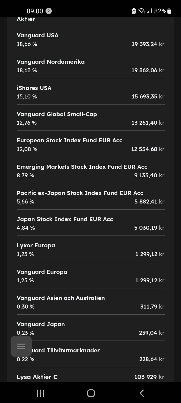 Det du drar nytta av med Lysa 100% aktier är (om jag minns Lysas 100% aktier-fördelning korrekt) är omviktningen mellan Global/Sverige/EM. Är det värt att betala 0.1% extra avgift för det?..